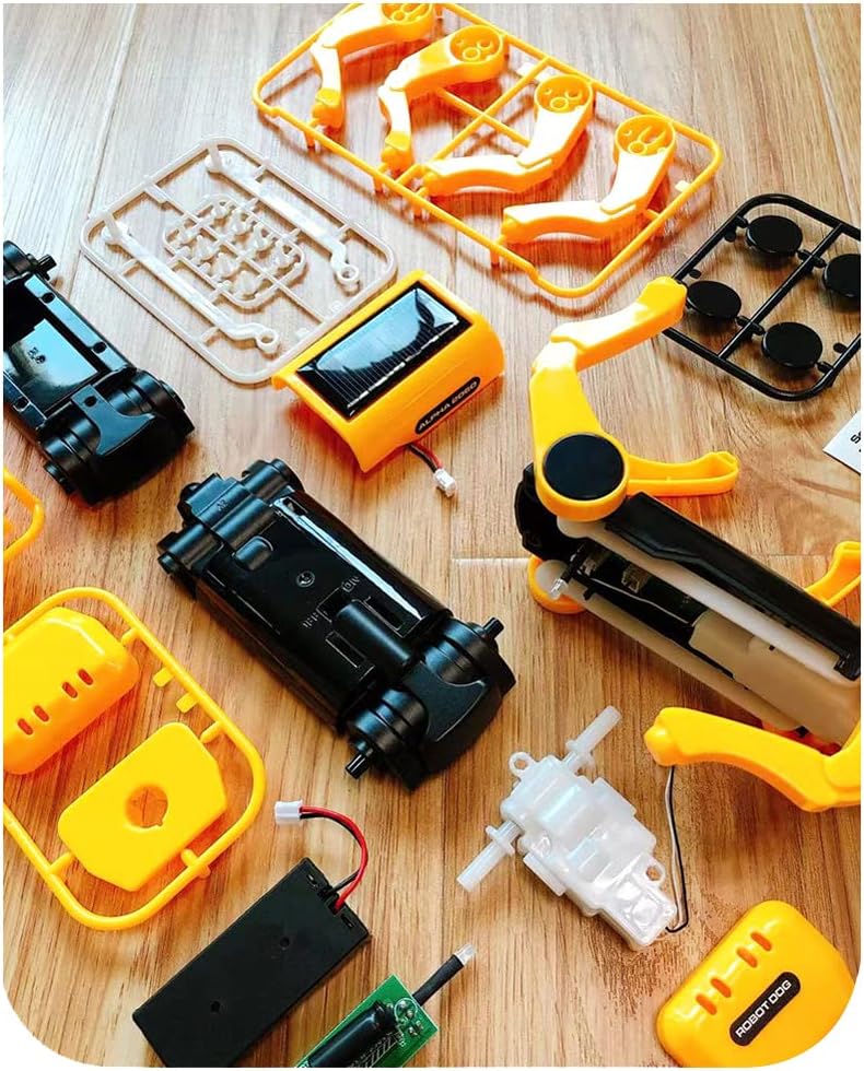 Yellow solar powered robot dog, DIY assembly Enhance children's hands-on ability yellow robot dog size, length 12cm, width 6cm, height 7.5cm
